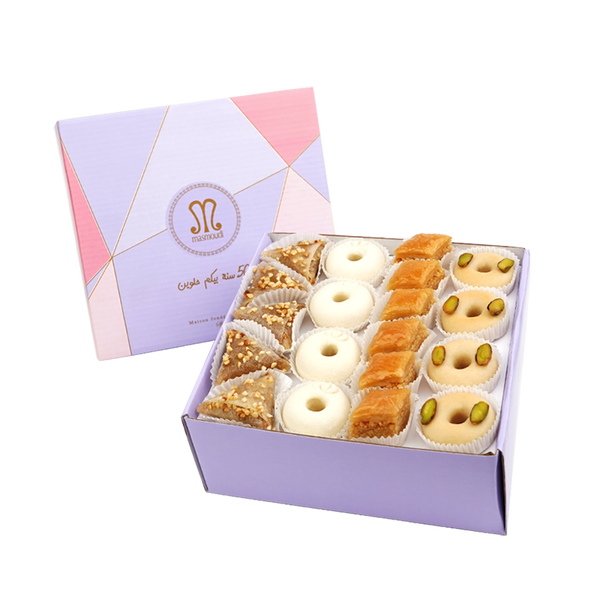 Un coffret surprise contenant un assortiment de pâtisseries fines tunisiennes du jour : Baklawa, Ghraiba, et Mlabes. Parfait pour accompagner votre café tout en évitant le gaspillage de ces merveilles artisanales.